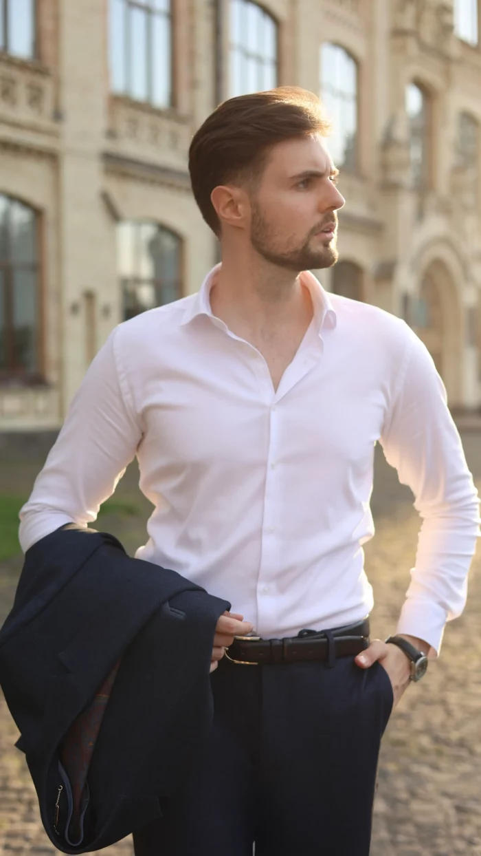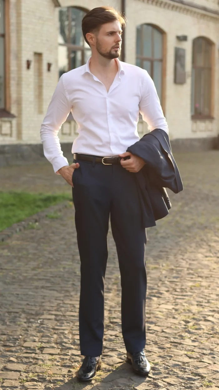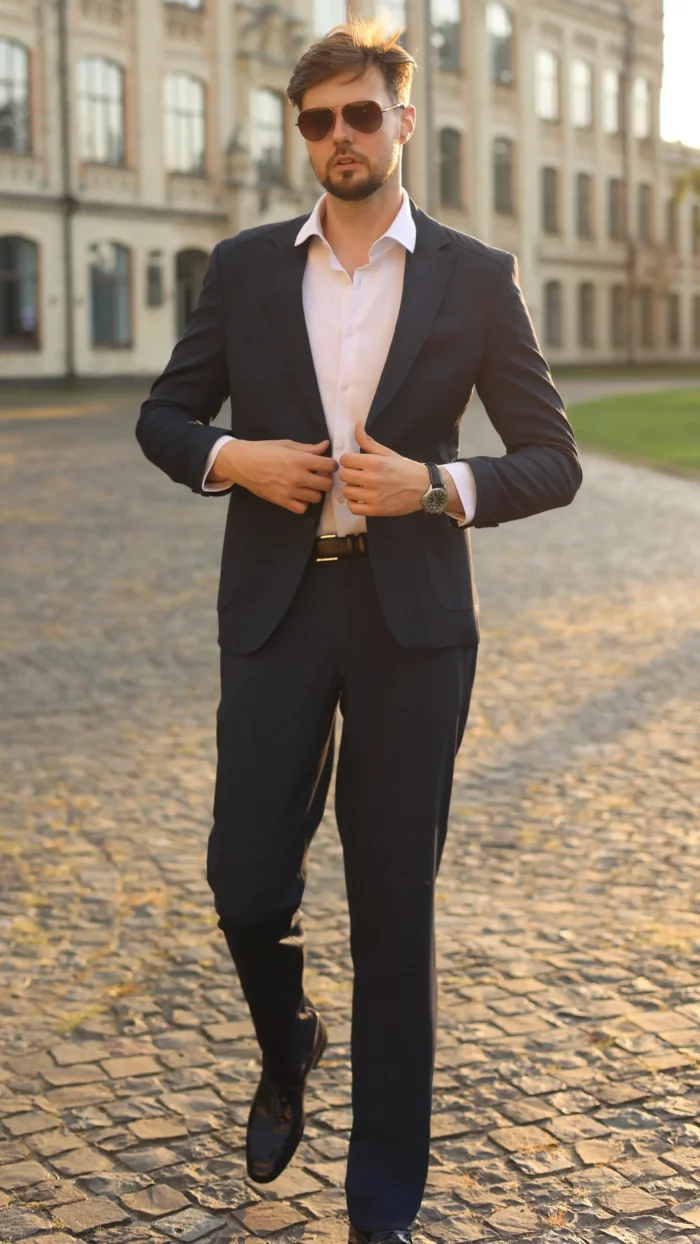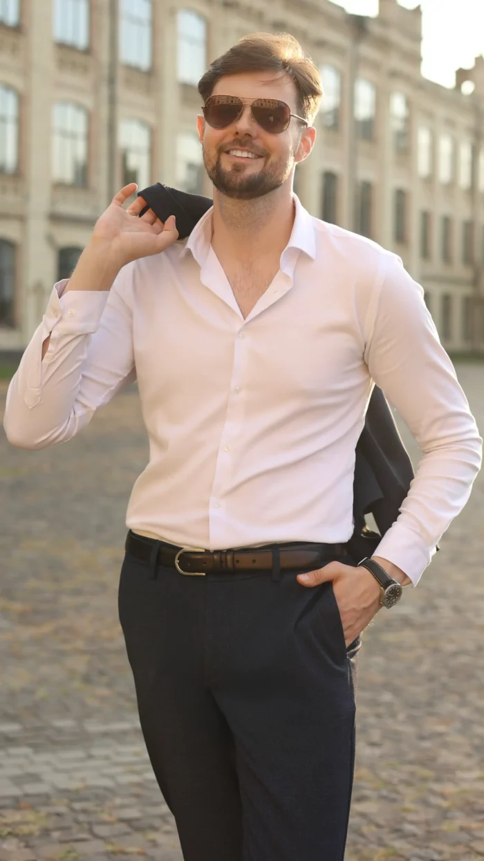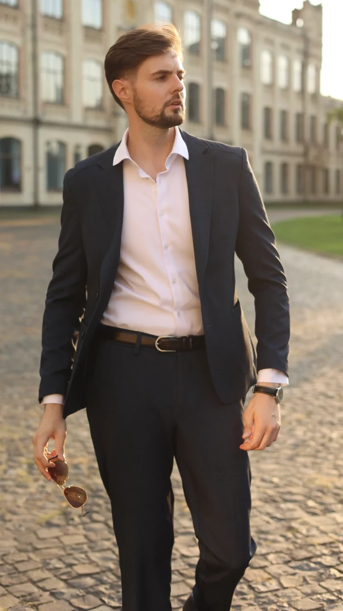 Елегантний костюм, який легко адаптується під будь-який стиль. У поєднанні з ременем та аксесуарами він створює строгий діловий образ для важливих зустрічей чи офіційних подій. А без ременя та з розслабленою сорочкою цей комплект виглядає більш невимушено, ідеально підходить для повсякденного стилю.