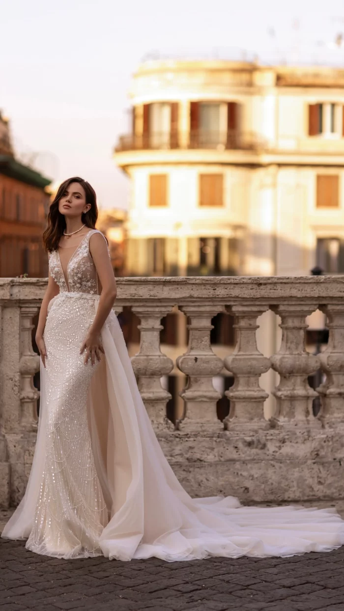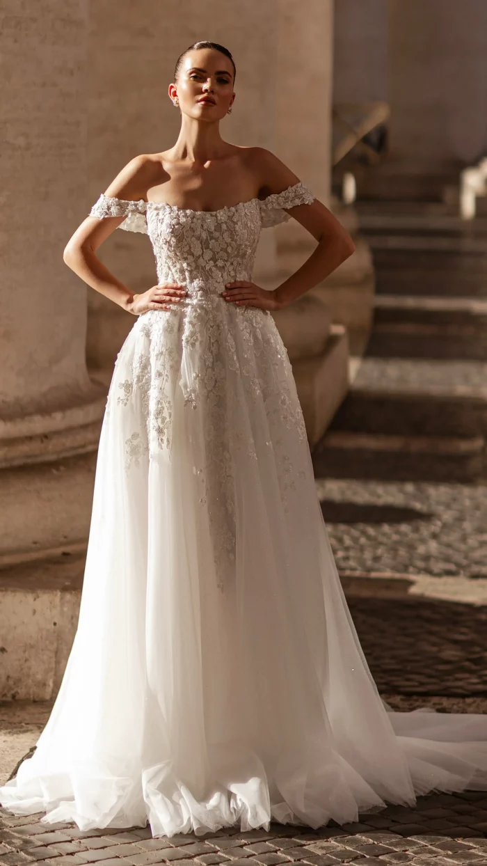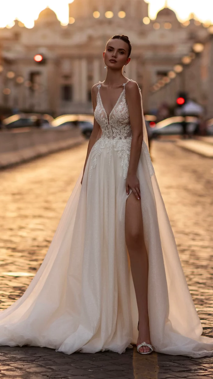 – Мереживні весільні сукні: витончені моделі з делікатними мереживними вставками, що додають образу ніжності та романтичності.