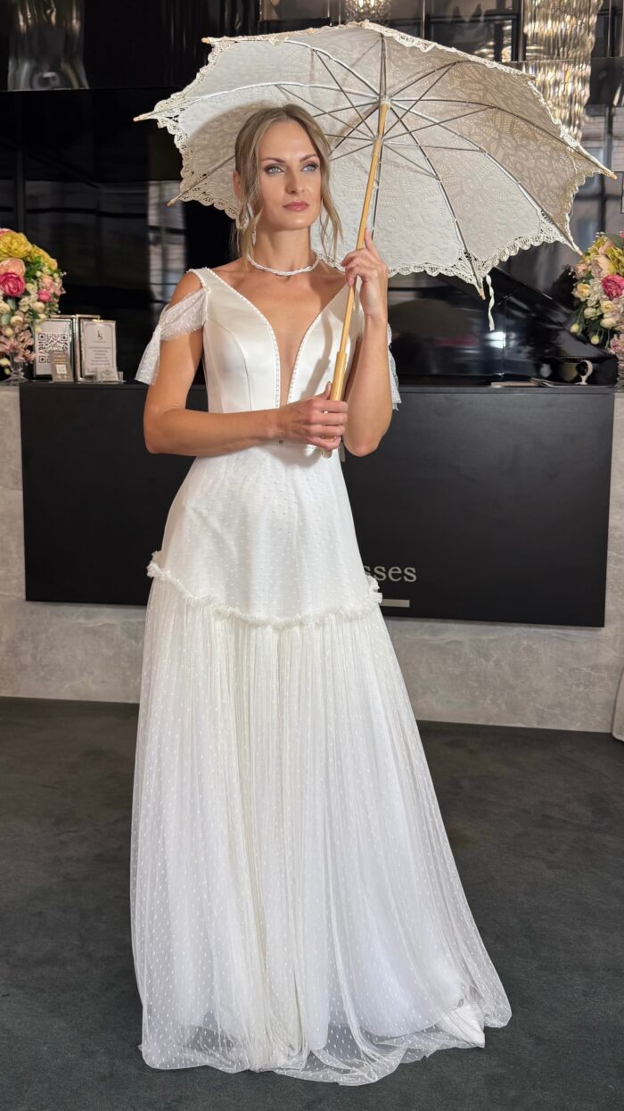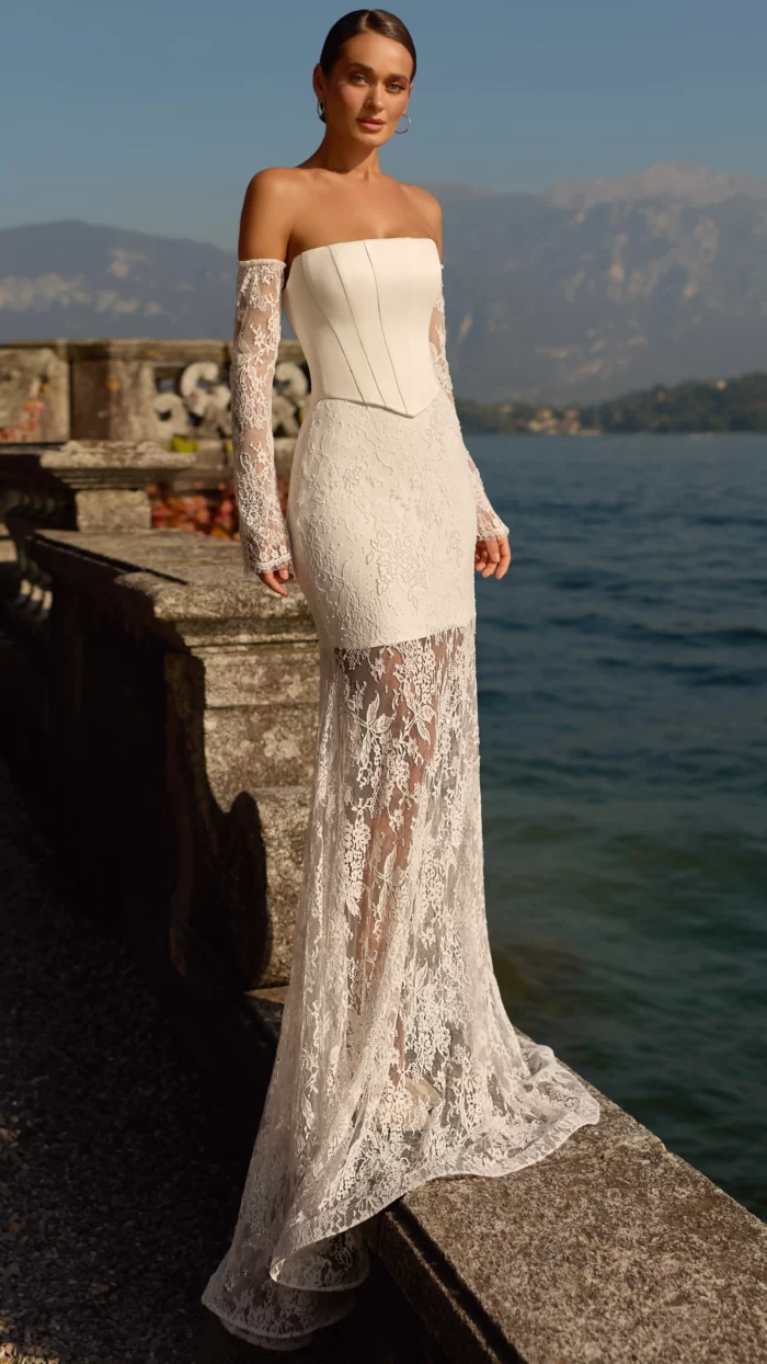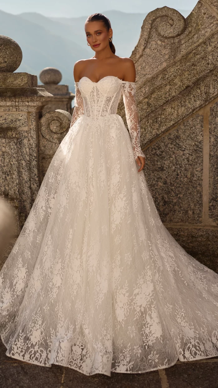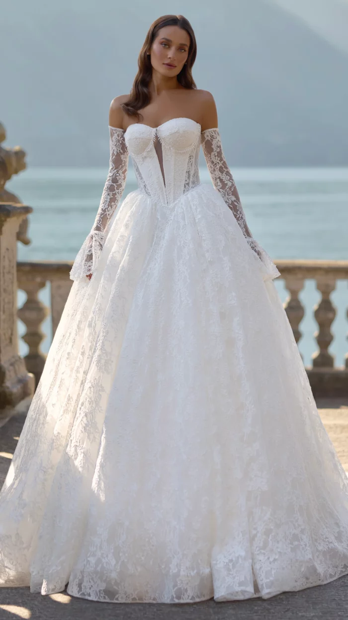 – Мереживні весільні сукні: витончені моделі з делікатними мереживними вставками, що додають образу ніжності та романтичності.