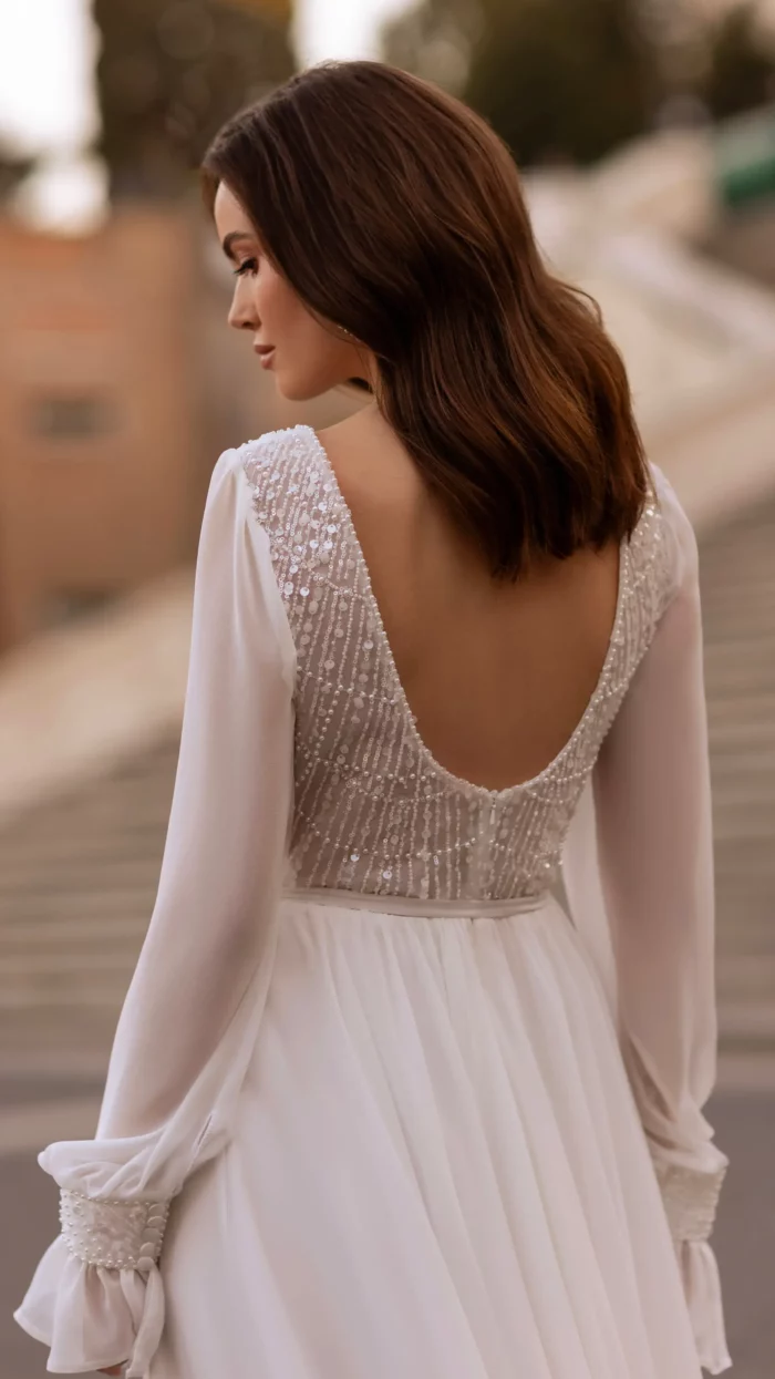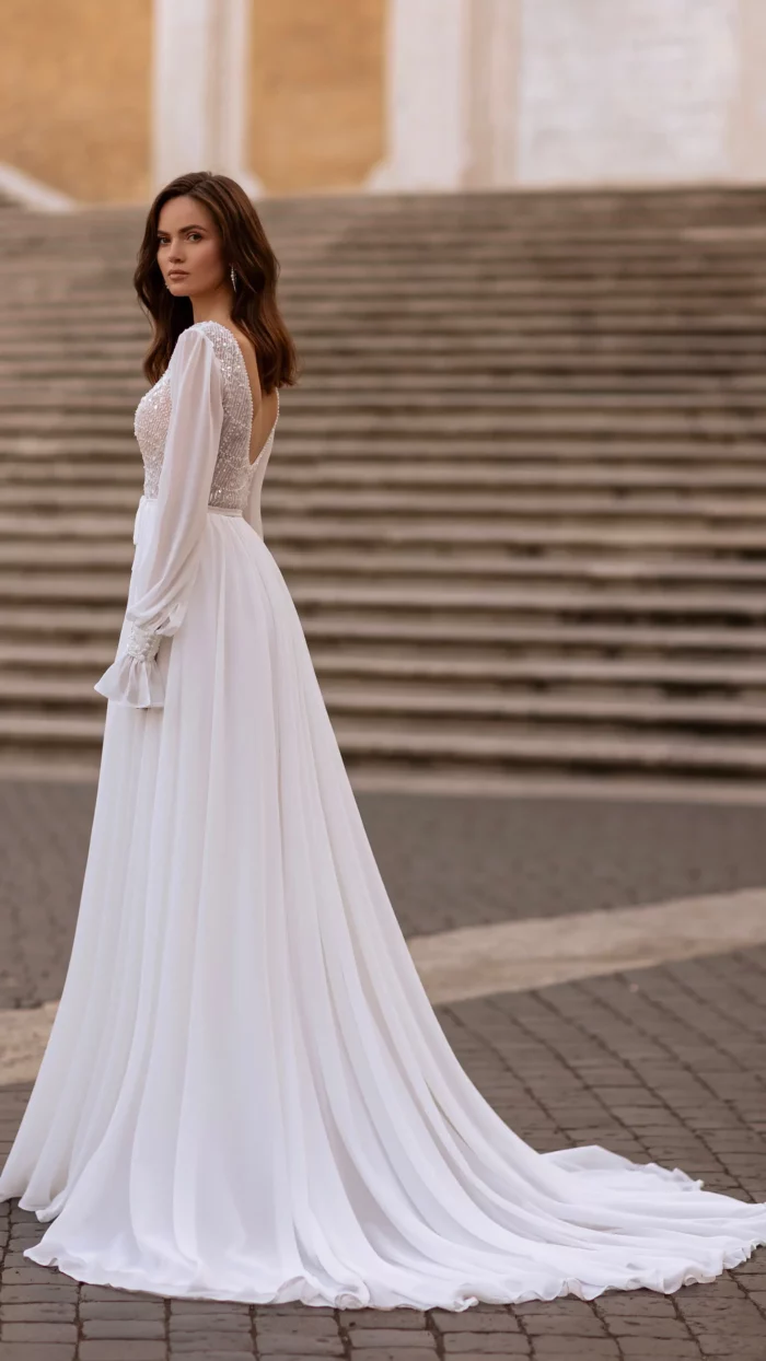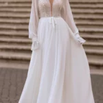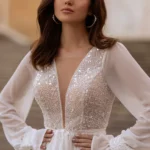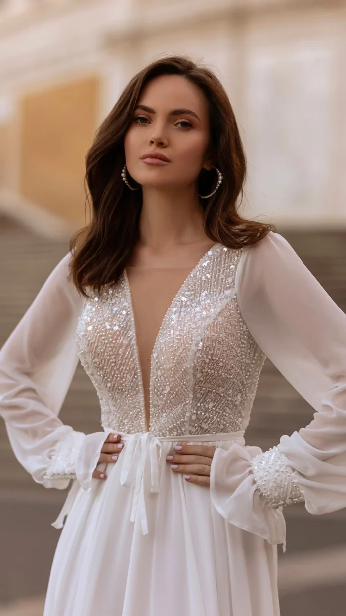 Це надзвичайно ніжна й елегантна весільна сукня від Laura Style — ідеальна для сучасної нареченої, яка хоче поєднати легкість і розкіш.