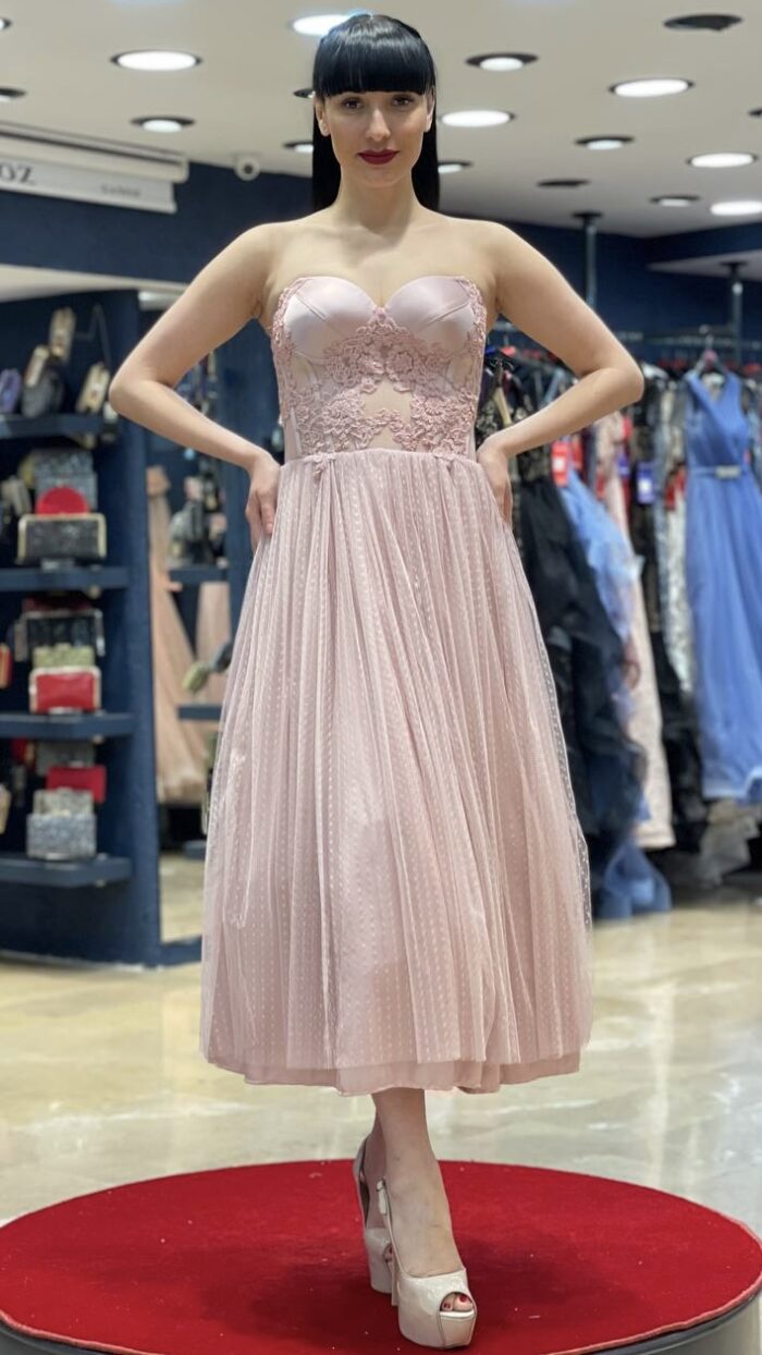 Легка й ефектна сукня з корсетом і прозорими вставками — ідеальний вибір для особливого вечора. Чудово пасує для випускного в університеті, святкової вечірки або романтичного побачення.